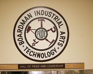 Students in Glenn Sivak's class at Boardman High School take on the task of building a concession stand for the school baseball field. From the bottom in black are seniors Dustin Ronci and Dominic DiCioccio. On top are juniors Tyler Mobley and Tom Haus.