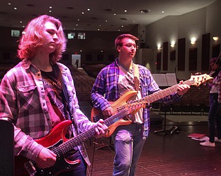 William D. Lewis The Vindicator Boardman HS 12th gradevocalist Nathaniel Ams during rehersal for Project Mayhem concert.